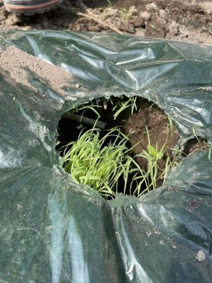 張り切りすぎてベッドの準備早く終わらせたらマルチの下から雑草がボーボーに生えてきたり